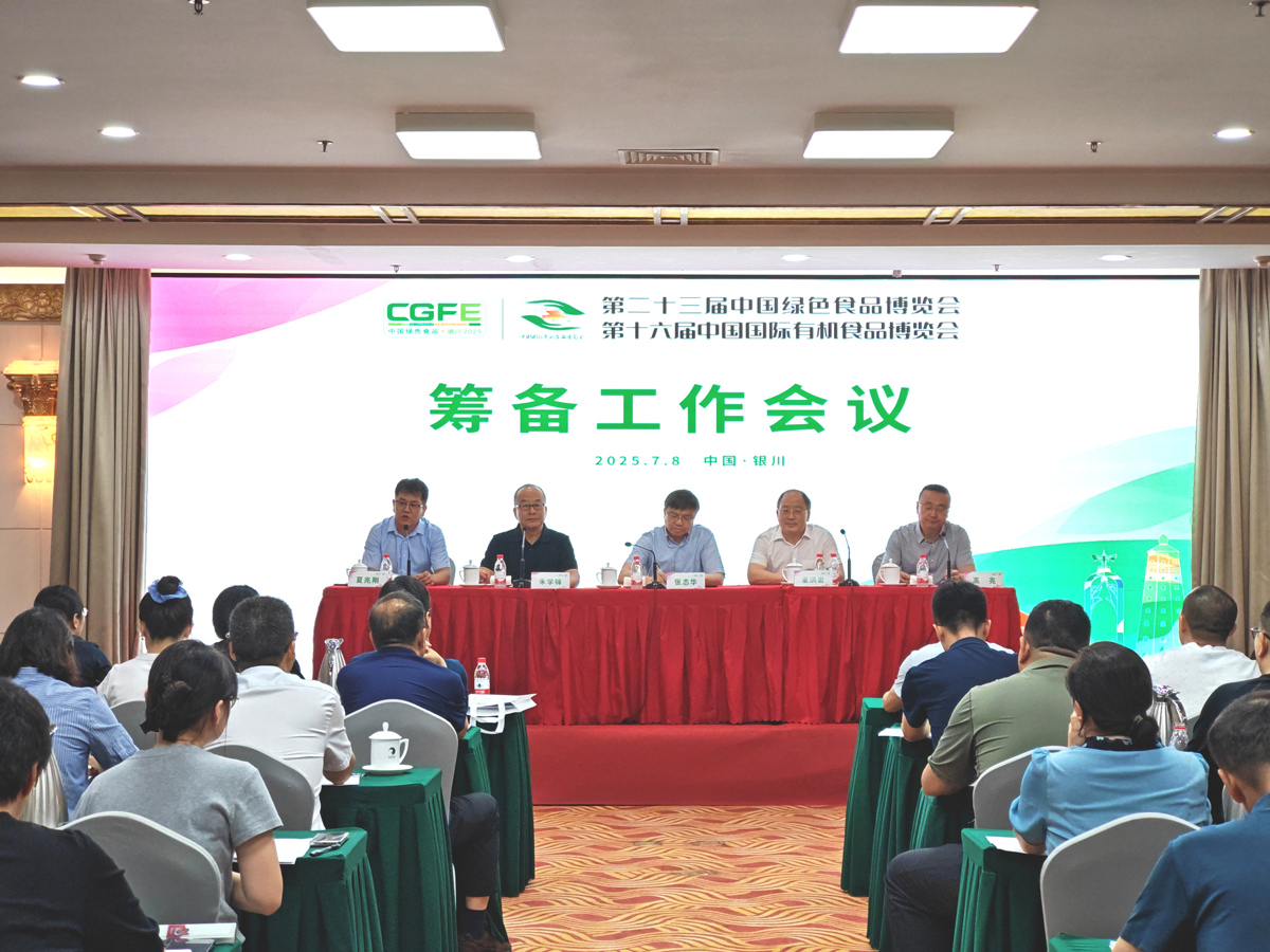 经农业农村部批准,第二十三届中国绿色食品博览会将于2025年9月25-27日在银川国际会展中心举办。同期同地还将举办第十六届中国国际有机食品博览会。为办好本届博览会,组委会于7月8日在宁夏银川召开筹备工作会议,全面部署招展、招商、展期主要活动等工作,并组织各省级绿色食品工作机构代表实地考察了举办场馆。中国绿色食品发展中心总工程师张志华、中国绿色食品协会拟任副会长董洪岩、宁夏回族自治区农业农村厅二级巡视员朱学峰、银川市人民政府副秘书长高亮等领导出席会议。中国绿色食品发展中心相关处室、中国绿色食品协会、中绿华夏有机食品认证中心、银川市农业农村局等有关同志和全国35个展团代表参加了会议。